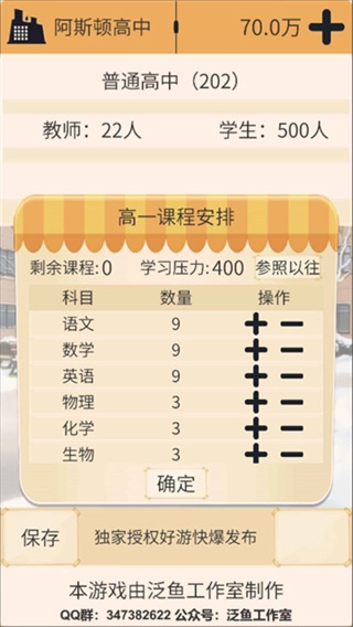 玩法休闲轻松且不肝不氪,前期可通过合理设定学费与招生规模积累资金,后期逐步拓展,在轻松氛围中享受办学成就感。