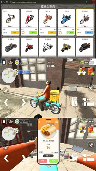 2、进入游戏后,你将身处于一个热闹的城市环境中,从简单的送餐任务起步,逐步挑战难度更高的关卡,同时解锁新的地图区域。