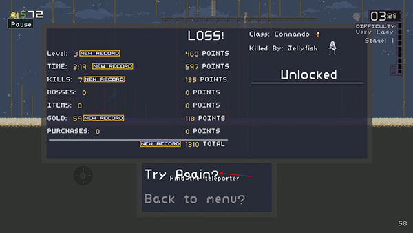 8、您可以点击“Try Again”按钮重新发起挑战,也能选择点击“Back to menu”按钮返回首页。