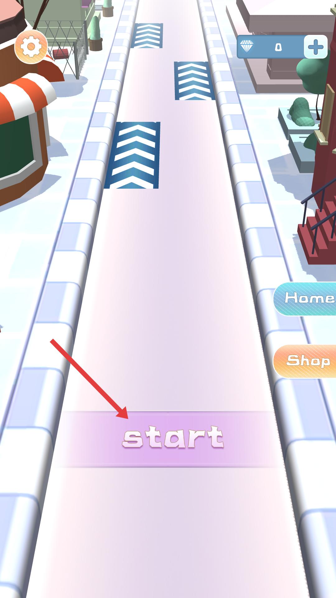 1、点击start按钮,开启跑酷,沿道路前行,留意道具与障碍,熟悉基础操作。