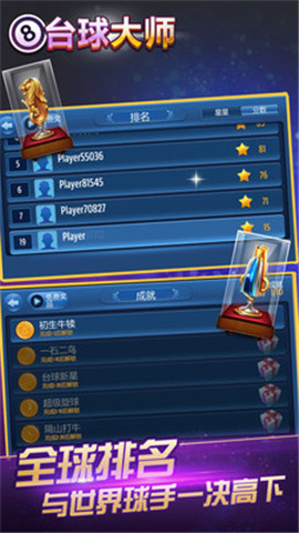在台球大师的全新版本中,你既能与来自全球的球手展开激烈的8球对决,也能前往世界各国进行花式台球表演!