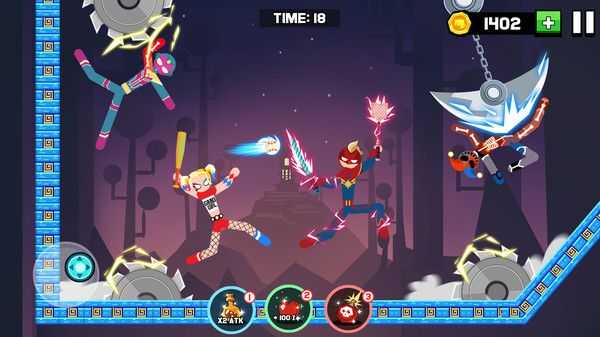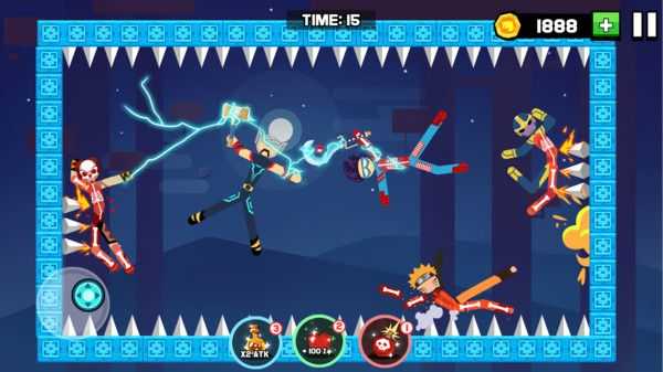 3、角色技能丰富多样:游戏内设有众多火柴人角色,每个角色都具备可灵活施展的专属技能,玩家解锁英雄后就能运用其独特的战斗能力,通过学习技能并精准把握敌人弱点来释放终极必杀技。
