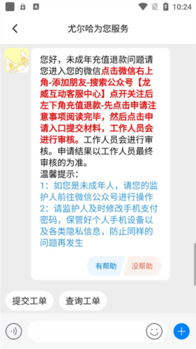4、如是未成年充值,则可以选择第一项“未成年充值退款”;