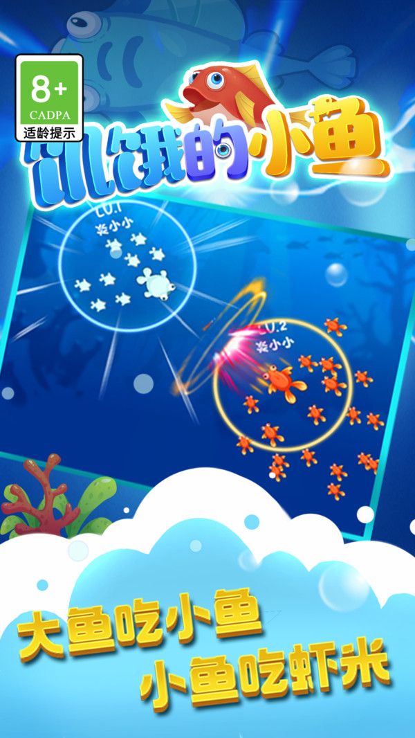1、看似波澜不惊的大海深处,实则潜藏着与人类世界相似的危机,以饥饿的小鱼为主角的游戏设定,让整个背景都弥漫着紧张感。