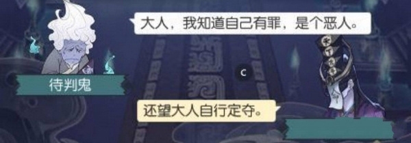 3、谛听会依据待判鬼的最后一句自评做出判定,判断其自评的准确(离谱)程度。既可以根据谛听的判词,也能结合小鬼的自评进行相应的等级增减,以此来确定鬼的等级。由于每周使用谛听有次数限制,因此若通过生平事迹便足以推断出鬼的等级,就可以不借助谛听直接做出判决。