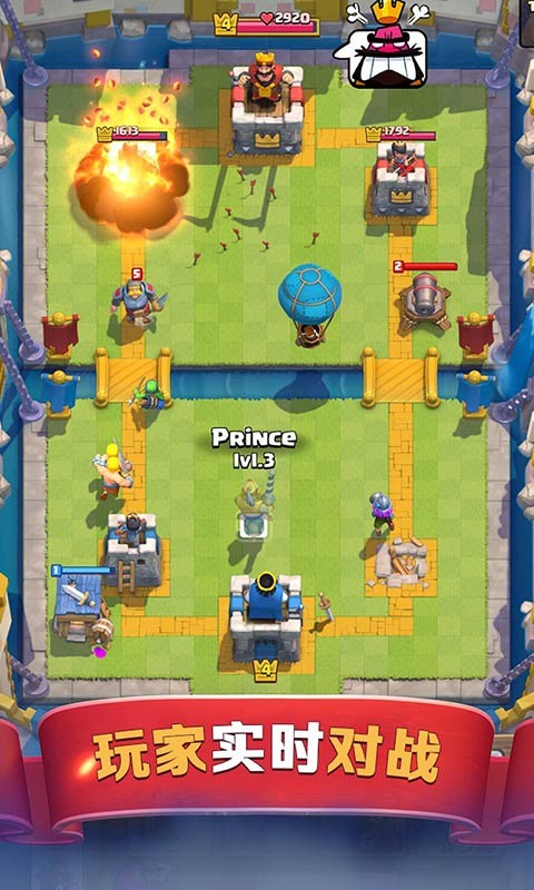 收集并升级你钟爱的《部落冲突》部队、法术和防御设施卡片,以及王子、骑士、幼龙等皇族角色。摧毁国王与公主的高塔以击败对手,赢取奖杯、皇冠和斗技场的荣耀。组建部落分享卡片,打造专属战斗社群,带领你的《Clash Royale》家族走向胜利!