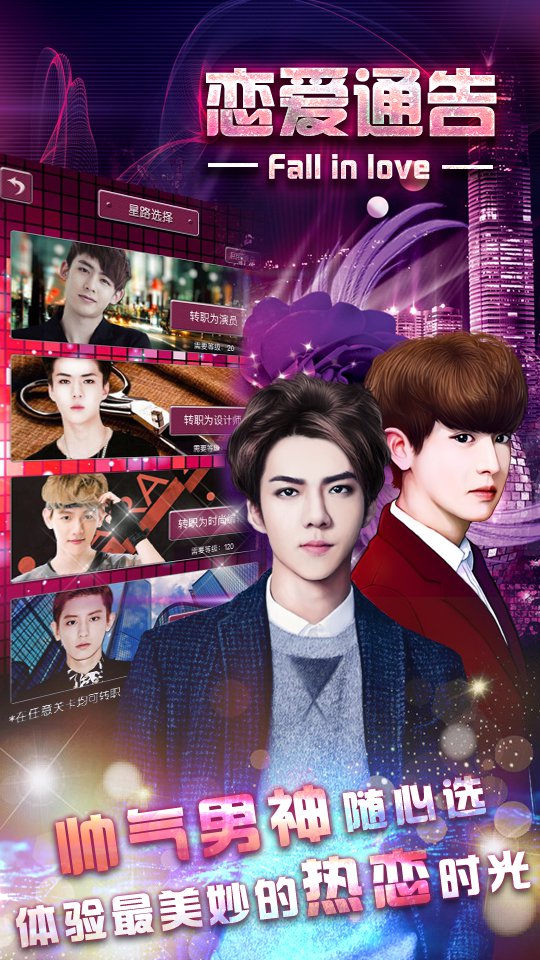 《恋爱通告》是一款超有趣的恋爱模拟游戏!在这里,你能自由挑选心仪的职业——偶像明星、设计师、主编、经纪人任你选;还有各种各样的男神等着你来攻略,让你轻松开启和男神的浪漫恋爱之旅。快来试试看吧!