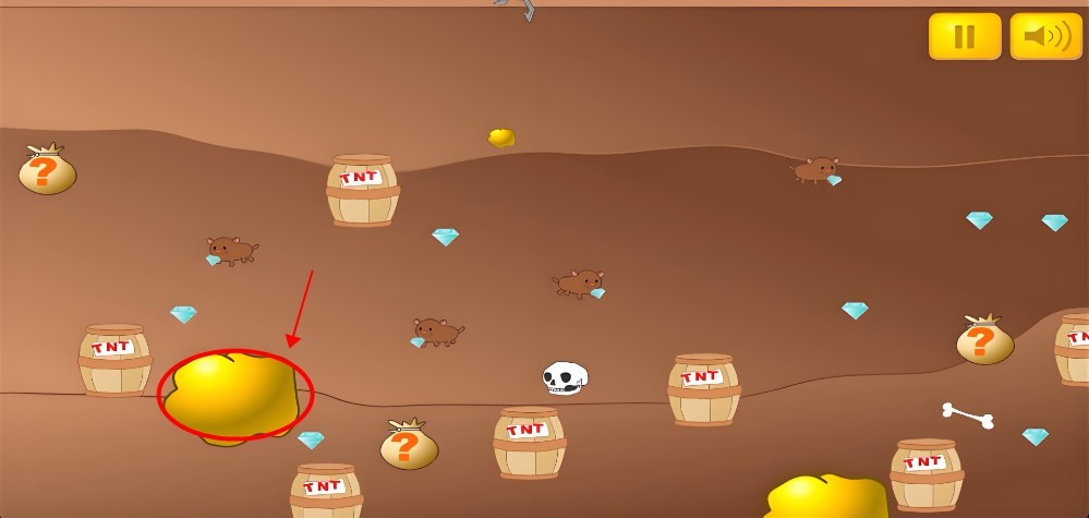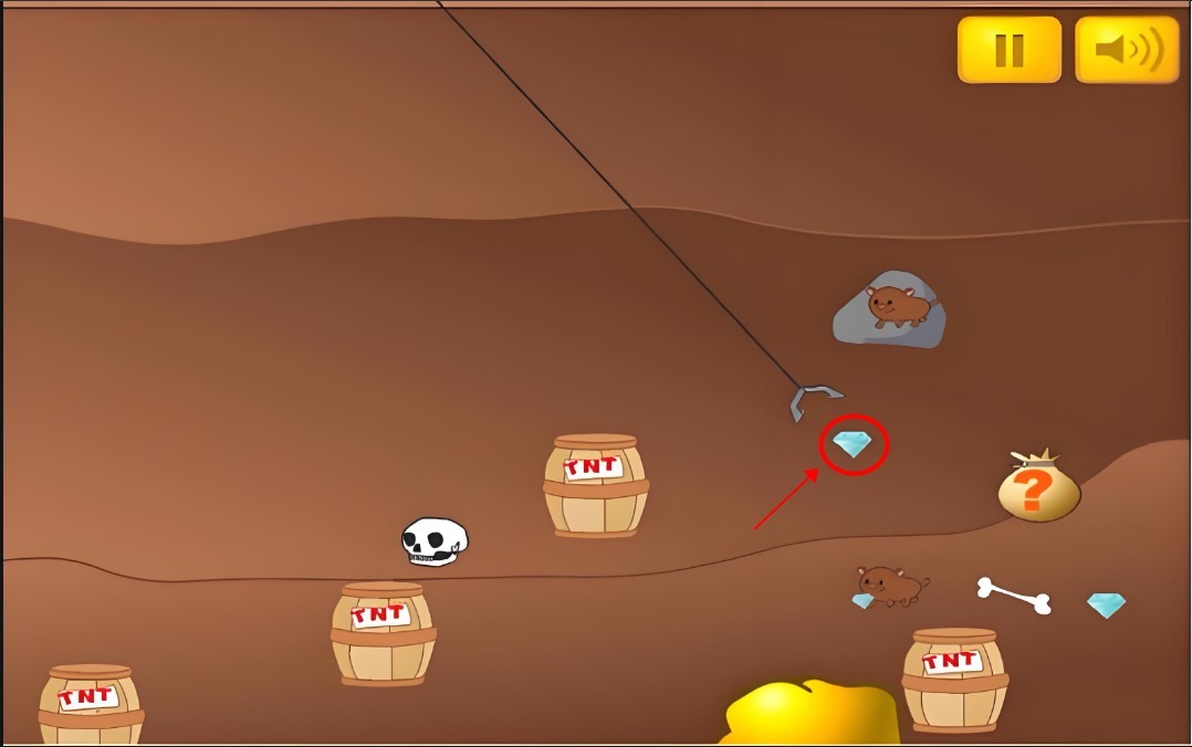 1. 操控矿工的钩子,尽量挖掘更多的黄金和其他矿石