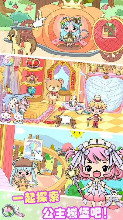 Q萌而又可爱的精致卡通画风,让玩家在游戏中化身为公主,和朋友们自由在城堡中进行探索,体验不一样的生活,用魔法和幻想创造属于属于你的神奇空间。在这片土地上,您会发现许多惊喜角色,例如小公主,漂亮的王子,龙,独角兽,小仙女和许多其他可爱的宠物在这片土地上等着你。如果您是