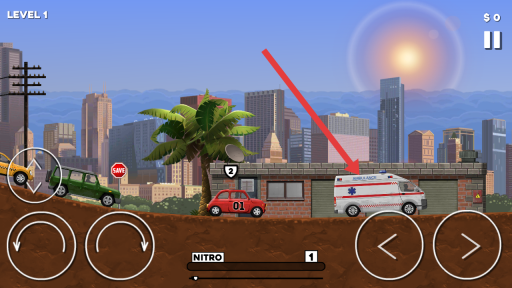 1、关卡起始,操控车辆出发,留意场景中AMBULANCE救护车等障碍物,平稳起步开启赛程。