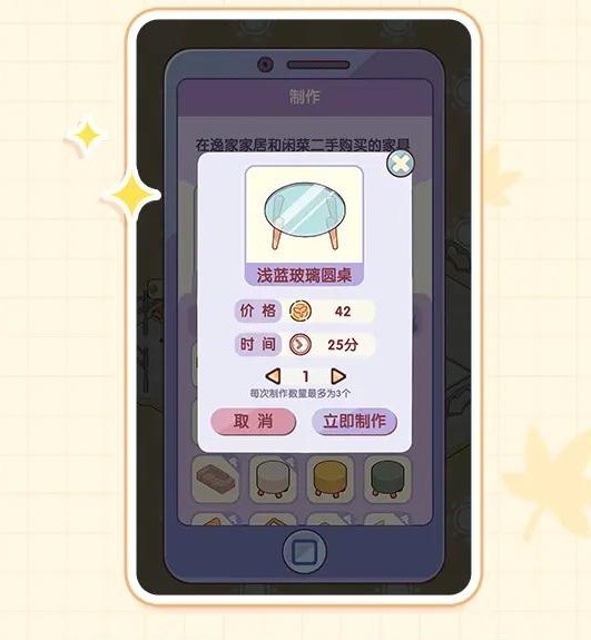 在家具制作环节,总共有6个制作格子可供使用,其中2个是免费开放的,剩下的格子需要通过特定方式来解锁哦~