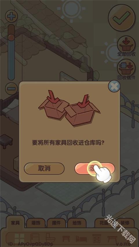 4、选择回收,所有家具可以一键收回背包。