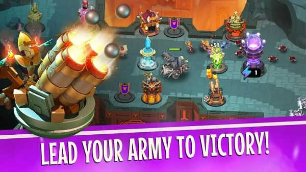 指挥你的士兵和英雄在画风独特的战斗中并肩作战,体验热血沸腾的战场氛围。