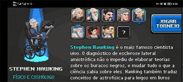1、游戏里能看到有超多角色可供选择,每个角色都配有专属的成就介绍,点击此处选中爱因斯坦开启挑战。