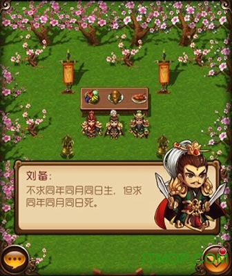三兄弟都加入后,跟随着指引一路点击,就前往桃园结义了。