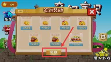1、进入游戏界面,找到签到奖励板块,点击领取按钮,即可获取对应天数的签到奖励,为后续游戏操作积累资源。
