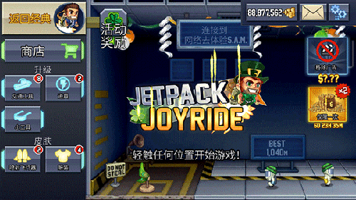 《Jetpack Joyride》是一款人气颇高的闯关跑酷游戏,中文译名“疯狂喷气机”。游戏采用横版视角,角色设计卡通萌趣,音效活泼生动,能为玩家带来轻松欢快的游戏感受。它融合了射击、跑酷、闯关、收集等丰富玩法元素,玩家需操控角色消灭外星人、躲避障碍物,以此完成关卡挑战。随着关卡的推进,游戏难度会逐步提升,玩家需要反复游玩来精进自身技巧。此外,游戏还设有多种模式可供玩家探索体验!