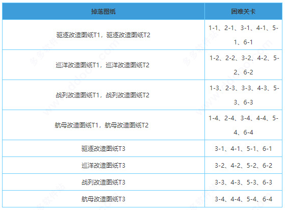 1、改造图纸是碧蓝航线里对舰船进行改造时不可或缺的道具,其主要获取途径为困难模式关卡的掉落与打捞,接下来为大家呈现困难模式的打捞表。