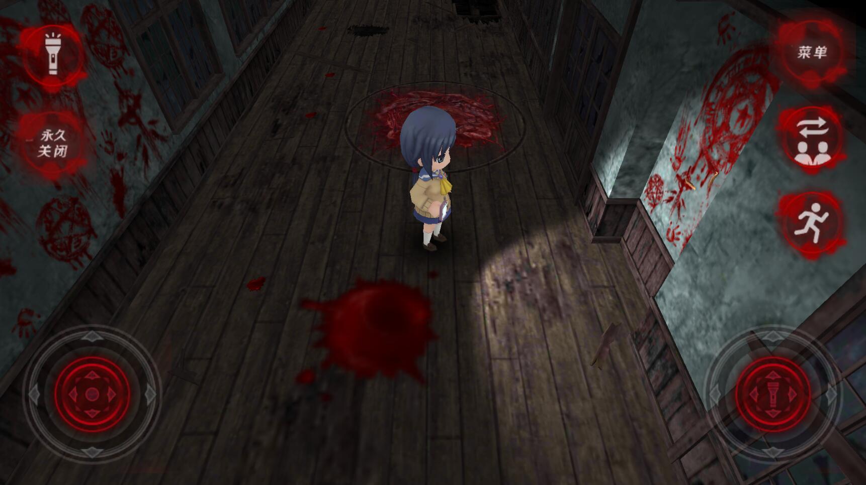 加入了躲入柜子里以及手电的设定,可以使用灵符攻击幽灵,血块可能诞生幽灵进行攻击,也可能隐藏着触手,触手攻击会导致角色黑化(啪啪啪),找到神像可以回复黑化值;地面安装了钢琴线,碰到可能大量失血,走近则可以去除,但要注意的是手电有电量限制【其实班长用的手机干电池有个毛用啊!】,而电池可以在其它地方捡到,同时地面有会设置大量陷阱,如钉子&玻璃;尸体可以收集名牌,不同选项可能导致错误的死亡结局发生;存档依然是蜡烛,同时可以回血。(补充:遇到怪物,除剧情必须外,统统可以存档杀~)