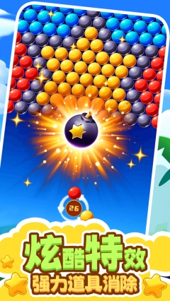 3、多种颜色和类型的泡泡,增加了游戏的趣味性和策略性。