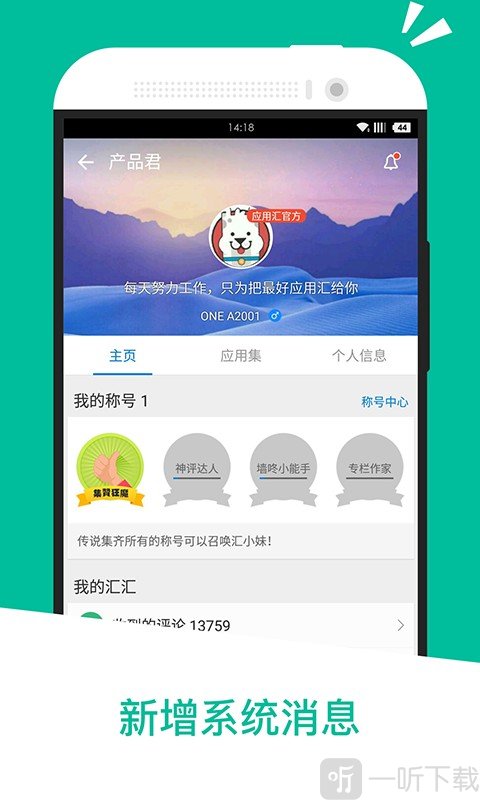 1. 应用汇作为安卓应用程序商店,能为用户提供海量应用,不仅免费快速,而且安全可靠。平台还有个性化的报告建议、趣味评论、精彩活动以及独家专属的交流空间,欢迎大家来应用汇交流经验。
