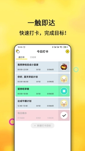1、可以设置任何打卡项,并可以多次对同一任务打卡,方便快捷的取消打卡。