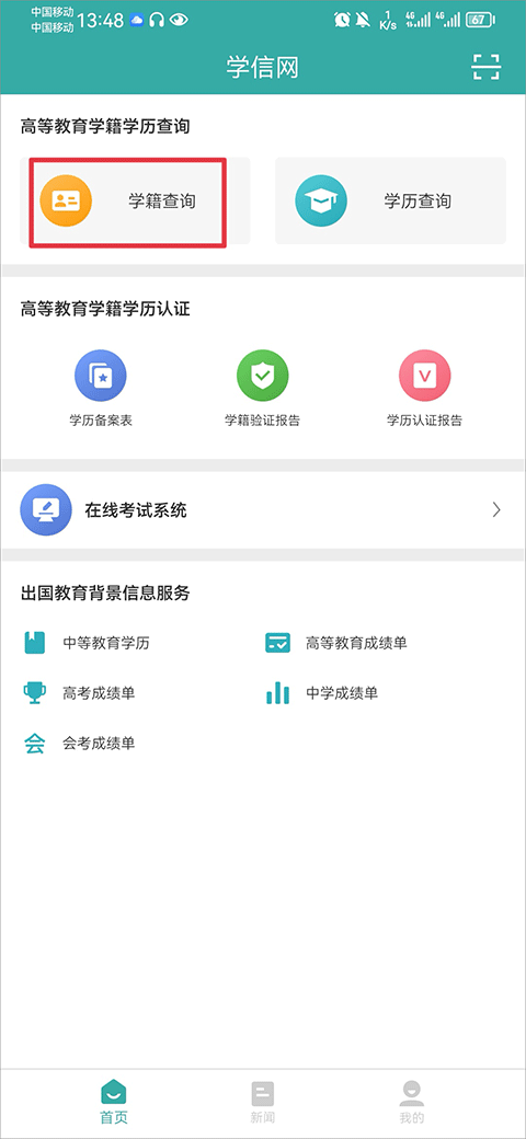 1、打开学信网,在首页中点击学籍查询