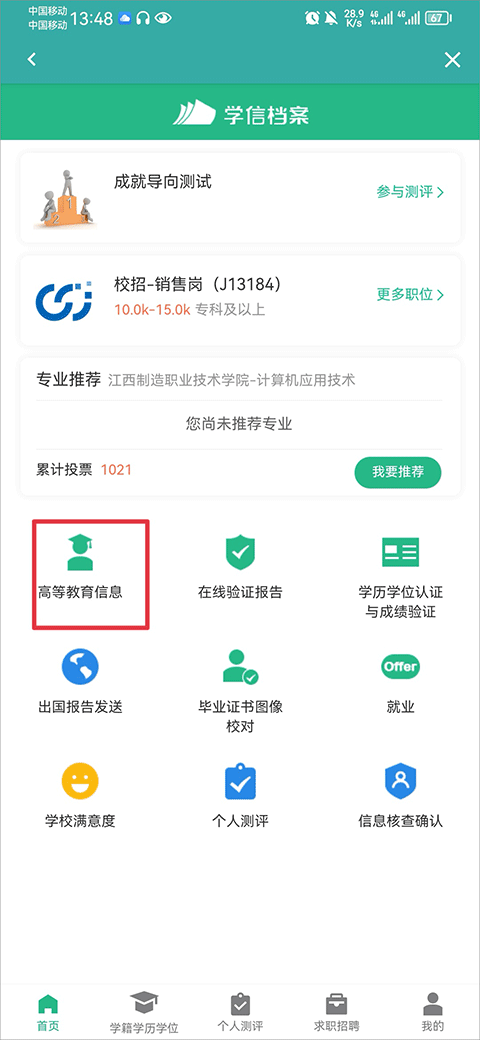 2、然后在学信档案首页中点击高等教育信息