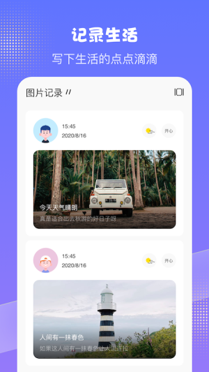 在记录时添加一张照片和一行信息,能让你的记录更具趣味性。
