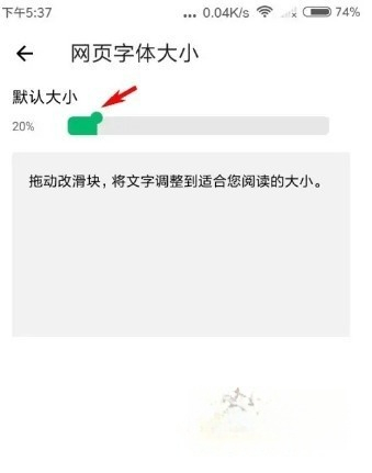 4、在设置页面中,点击“网页字体大小”进行调整。