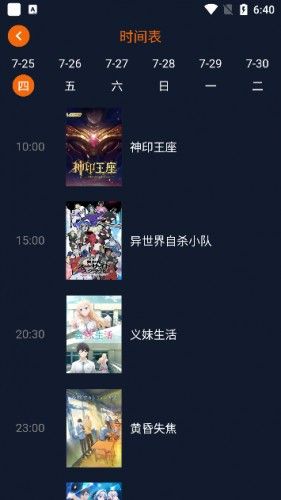 4、软件还设有时间表的功能能够让用户清楚的看到各种动漫更新的时间。