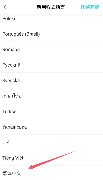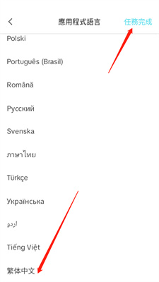 3、然后往下滑找到【繁体中文】在点击【任务完成】!