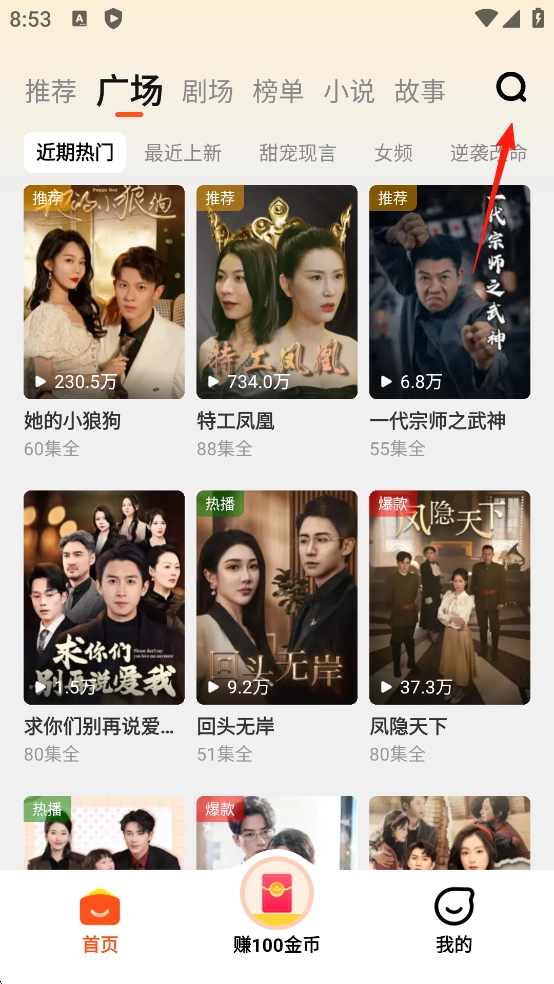 1. 打开软件,进入首页后,可点击右上角进行搜索。