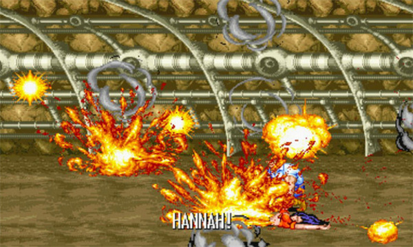 这款游戏改编自1993年美国CBS播出的《Xenozoic Tales》,核心是以“恐龙”这一经典商业题材吸引玩家关注。故事背景设定在恐龙与人类共存的26世纪。在该作品里,道具的功能性被大幅提升:所有枪械类道具都引入了弹药机制,弹药耗尽后便只能当作一次性投掷物品使用,玩家甚至能夺取Boss的武器进行反击;而木桶这类容器道具也不再只是为获取内部物品而被破坏,它们可以被玩家抬起并投掷出去。