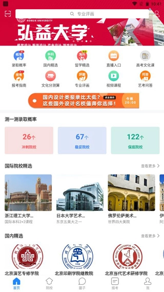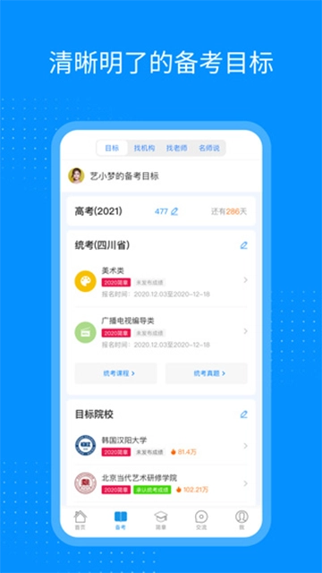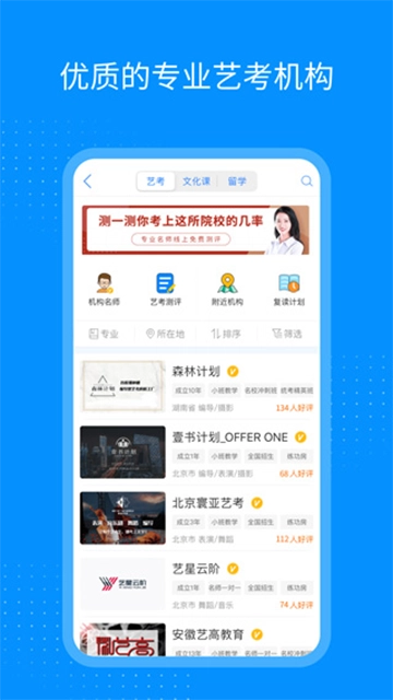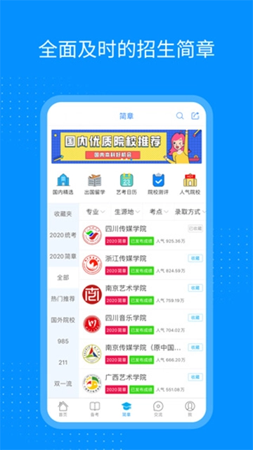 最好用的招考信息查询工具,覆盖600多所艺术大学,与学校招生信息实时同步,支持分地区、专业、文化分、考点查询,一目了然的分省计划、报考步骤、历届文化分参考、历届校考试题!