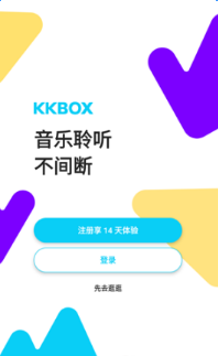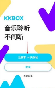 1、打开KKBOX,点击“注册享14天体验”选项。