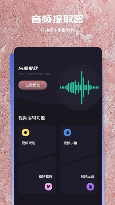 ·【音频提取】页面,可读取并提取手机视频中的声音,同时具备多种视频编辑功能;