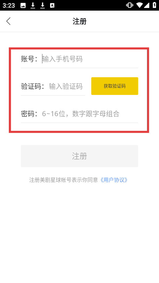 4、在注册页面,需填写【账号】,获取并填写【验证码】,设置【密码】后即可完成注册。