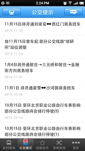 出行提示服务,针对线路运营变动、道路绕行安排、施工影响等情况提前预警,并推送新线路开通等相关信息。作为一款刚上线的软件,“北京实时