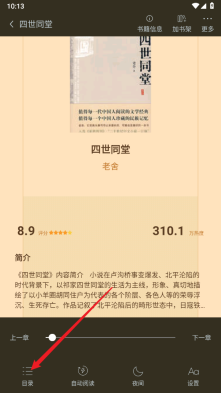 进入阅读界面后,轻点屏幕中间区域调出菜单,然后选择“目录”选项。
