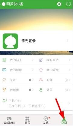 2、启动软件后,点击界面上的“空间”选项,接着完成注册与登录操作,具体步骤可参考下图: