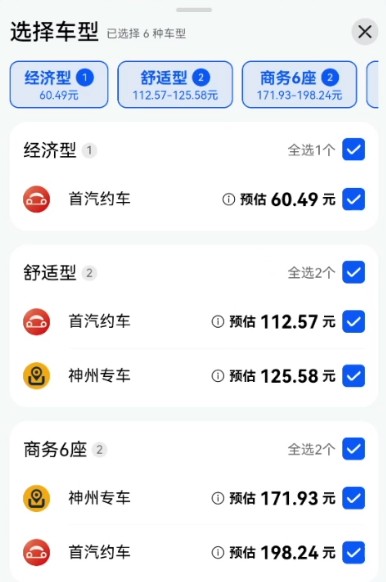 2、当大家选好位置之后可以进行挑选自己所喜欢的车型以及服务。