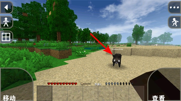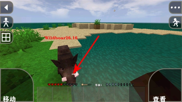 1、进入游戏后操控移动按键控制角色靠近目标生物如野猪,靠近后可触发互动或战斗流程。