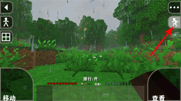 4、点击右上角的潜行按键,可开启角色的潜行状态,降低被生物发现的概率,探索场景。