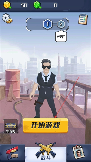 1、点击界面中的开始游戏按钮,进入第1关的战斗场景。