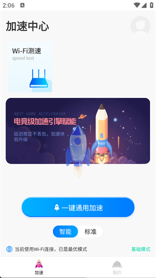 3. 在主页面即可开启一键通用加速,开启流畅的网络体验;
