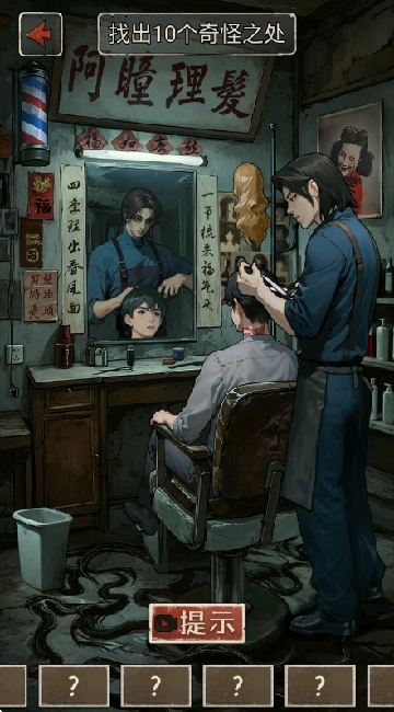 2、第一关是找出10个图片中的奇怪之处,画面很诡异,胆小者不适合。