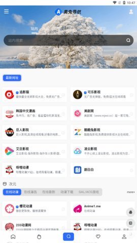 打开“奥免导航”应用,进入首页后,在顶部的搜索框里输入您想访问的网址或者关键词来进行搜索。