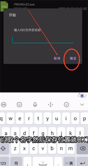 4、选择好后,点击右上角第二个输入iso文件名称,然后确认保存。