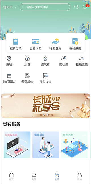 3、生活栏为大家提供水电费、燃气费、税费、社保等各类缴费入口,助你省心省力。